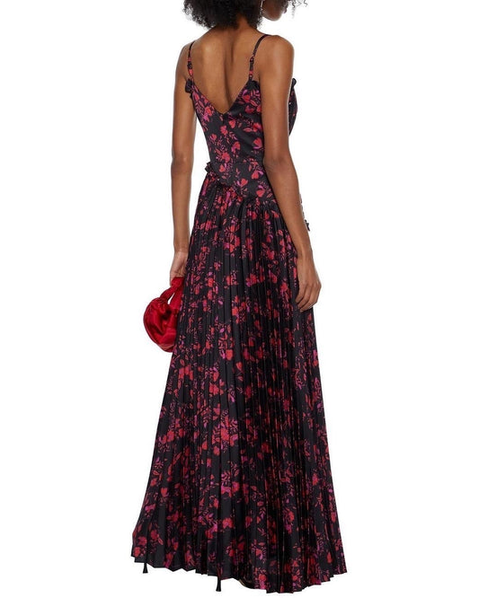 Monique Lhuillier Wrap-effect pleated floral-print satin maxi dress